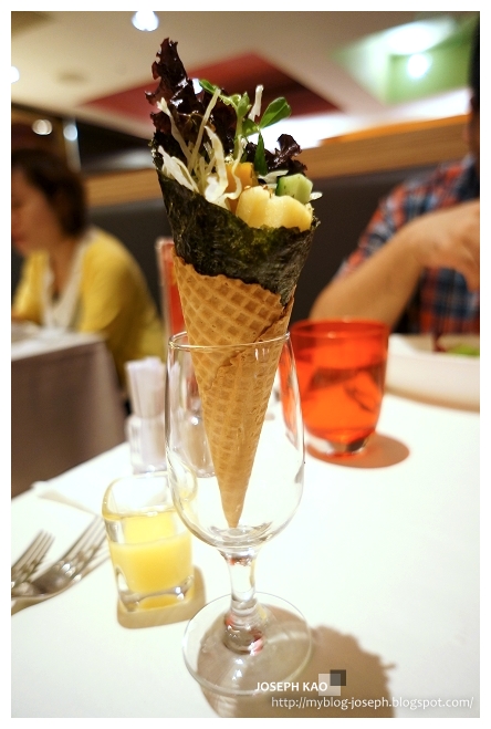 沙拉變成手捲了....旁邊的醬是淋在上面吧...總覺得吃起來不是那麼方便...