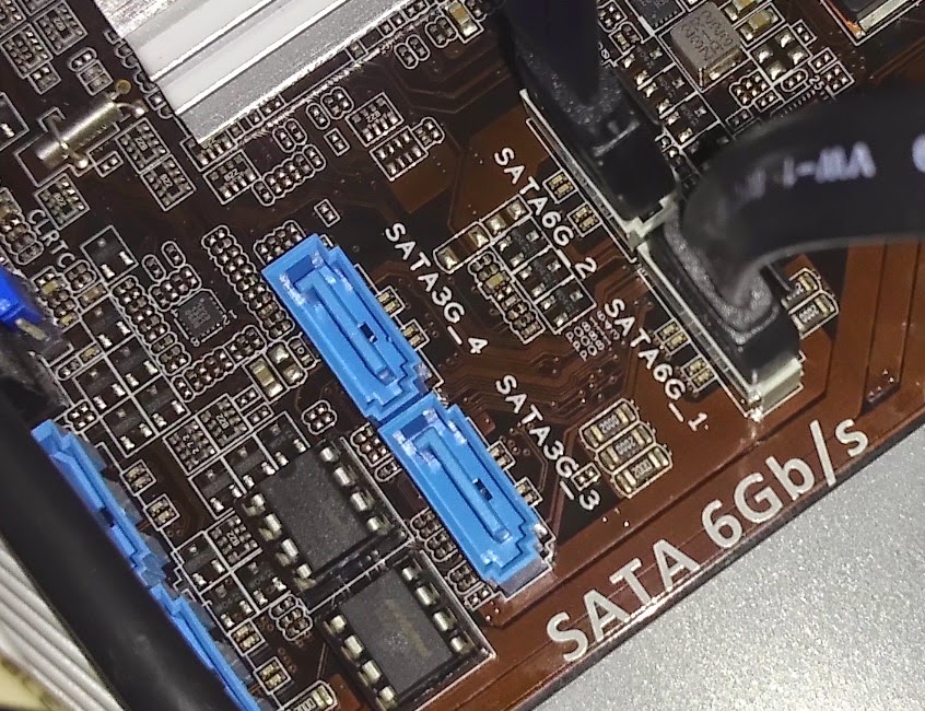 <span style="font-family: Arial, Helvetica, sans-serif, 新細明體;">▼ 這台屬於商業用途的主機,所以只提供兩個SATA 3與四個SATA 2的接口,打開機殼,找到SATA 6Gb/s的接頭,它是白色。</span>