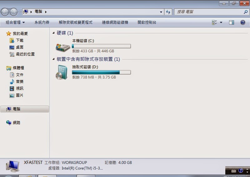 <span style="font-family: Arial, Helvetica, sans-serif, 新細明體;">▼ 安裝完畢Windows 7抓取到的磁碟空間有446GB。</span>