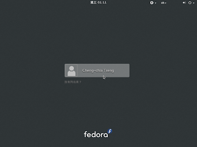 再次登入後可以看到介面確實切換成臺灣所使用的正體中文了!除了可以用中文介面「試用 Fedora」外,待會還能用「安裝至硬碟」來安裝 fedora。不過下面似乎多了一個視窗,先點開看看。