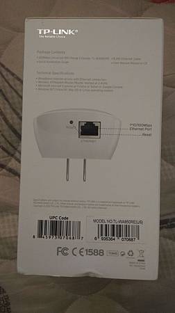 其中一面介紹TL-WA850RE的介面,有重置鈕跟RJ-45孔,有可以看到TL-WA850RE的插座。