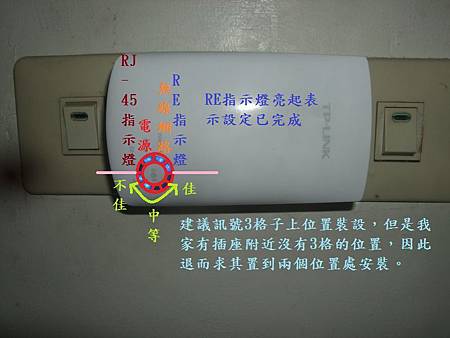 其中一介紹的是TL-WA850RE的按鍵跟指示燈說明,中心按鍵是用來跟WPS的AP做快速連接使用,右半圓的指示燈為TL-WA850RE中繼站接受到的訊號強度,左邊有電源指示燈、Wireless啟動指示燈、Ethernet指示燈、RE指示燈。