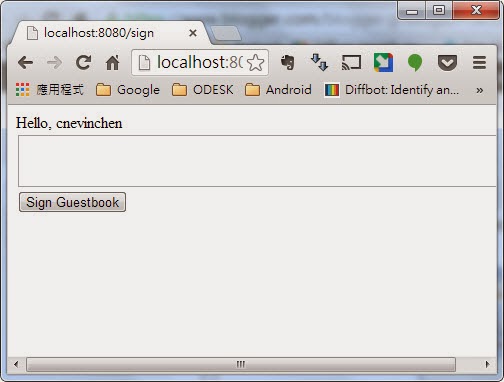 到目前為止已經可以留言,但是留言內容不會被儲存起來,下一篇再介紹如何使用Cloud SQL把資料儲存起來^^