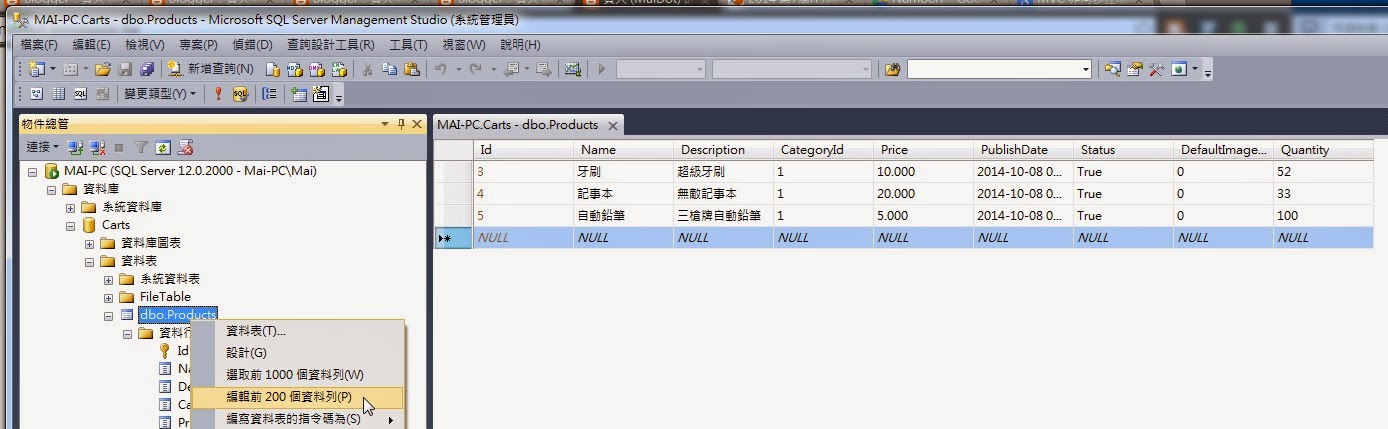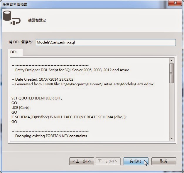 一.從Entity模型產生資料表至SQL Server ,並且塞入資料