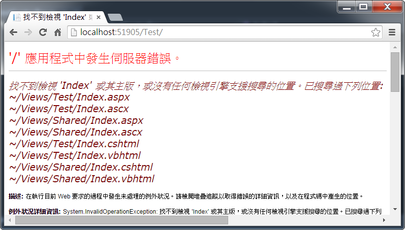 專案中的View檔案統一都是放在Views資料夾下,以MVC4的預設範本為例,在先前Controller的部份我們已經有稍微認識到HomeController與AccountController,其中相對應的View就是存放在Views資料夾中與Controller同名的資料夾內,以HomeController為例,其對應的View就是放在Views/Home資料夾下