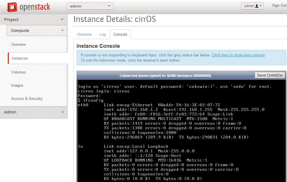 點選到虛擬機器的 console 介面 應該就會看到先前安裝的novnc 的登入服務了