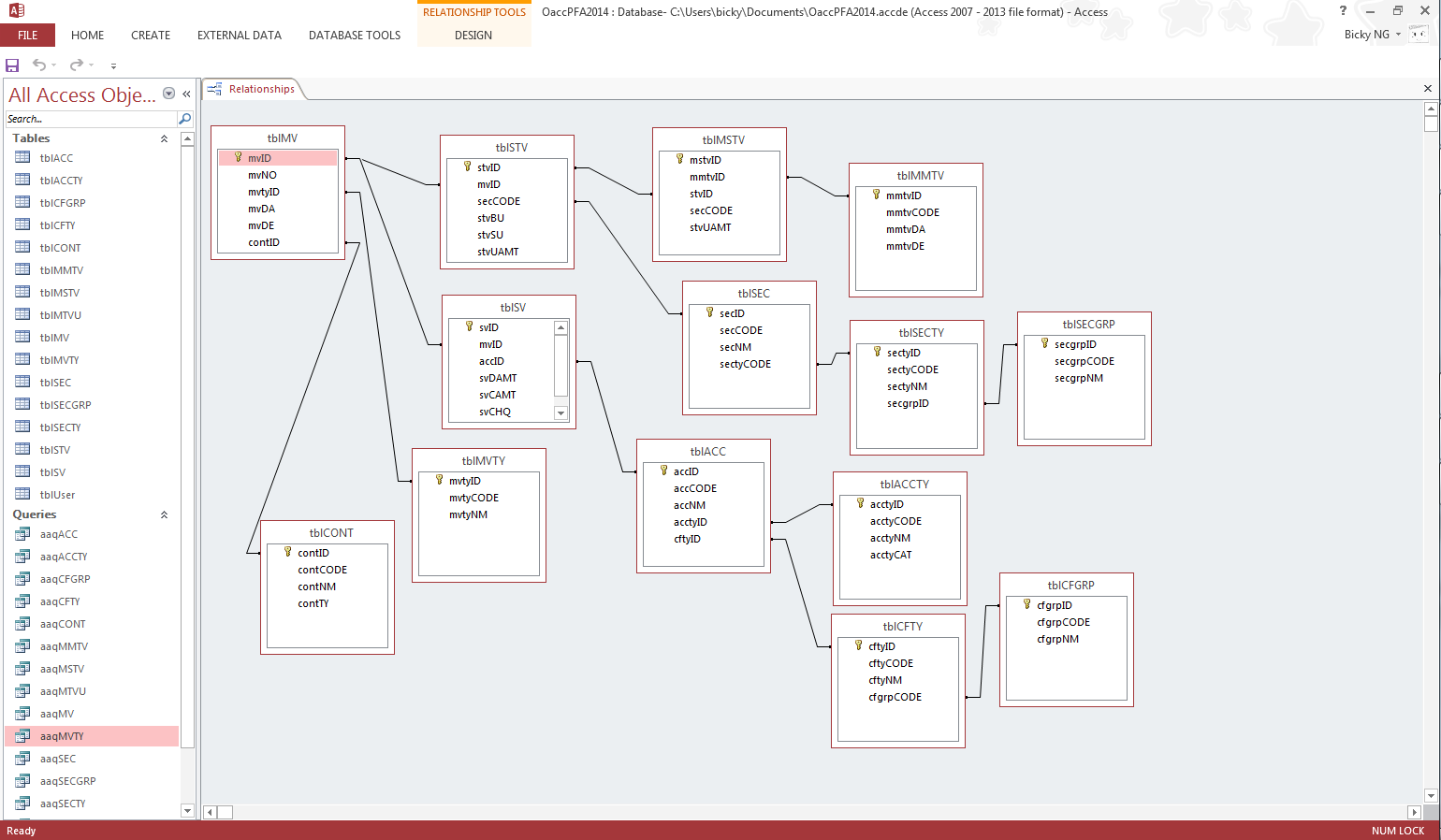 如果留心上圖, 你會發覺真正要花時間輸入的FIELD其實不多, 我盡量將有重複性的DATA都獨立成一個個TABLE, 即使用者只需輸入一次該等DATA, 往後就可以重複使用.