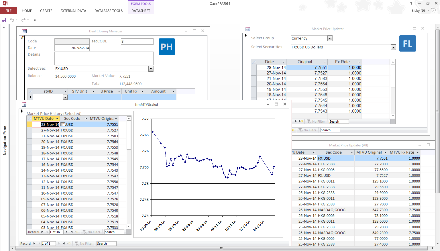 今日主要是加了三個有關 Investment 的 Form,分別是用來檢視 Market Price History (左下),用來 Update 個別 Security 的 Market Price Updater (右上),及不作區分的 Market Price Updater (右下)。