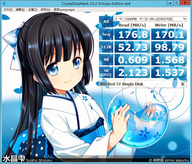 接下來以跑分軟體實測WD Red 5TB硬碟機速度,各跑分軟體功能類似,一樣以最常見之ATTO、AS SSD BENCHMARK、CrystalMark作為代表。