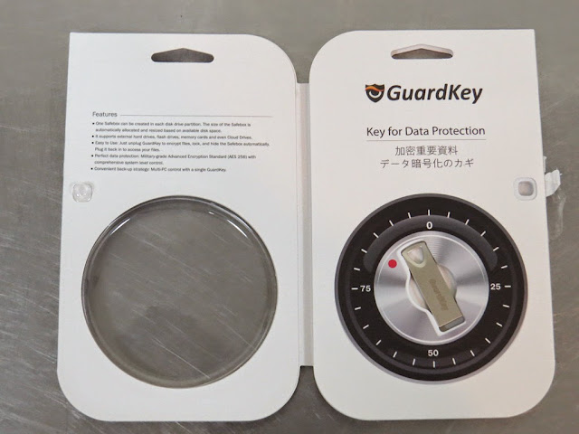 ▲盒裝GuardKey的包裝正面,有英文、中文、日文三國語言標題,「加密重要資料」、「Key for Data Protection」揭示了本產品的主要功能!