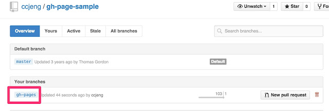 網頁發佈之後,Repository會自動增加名為「gh-pages」的分支(Branch)
