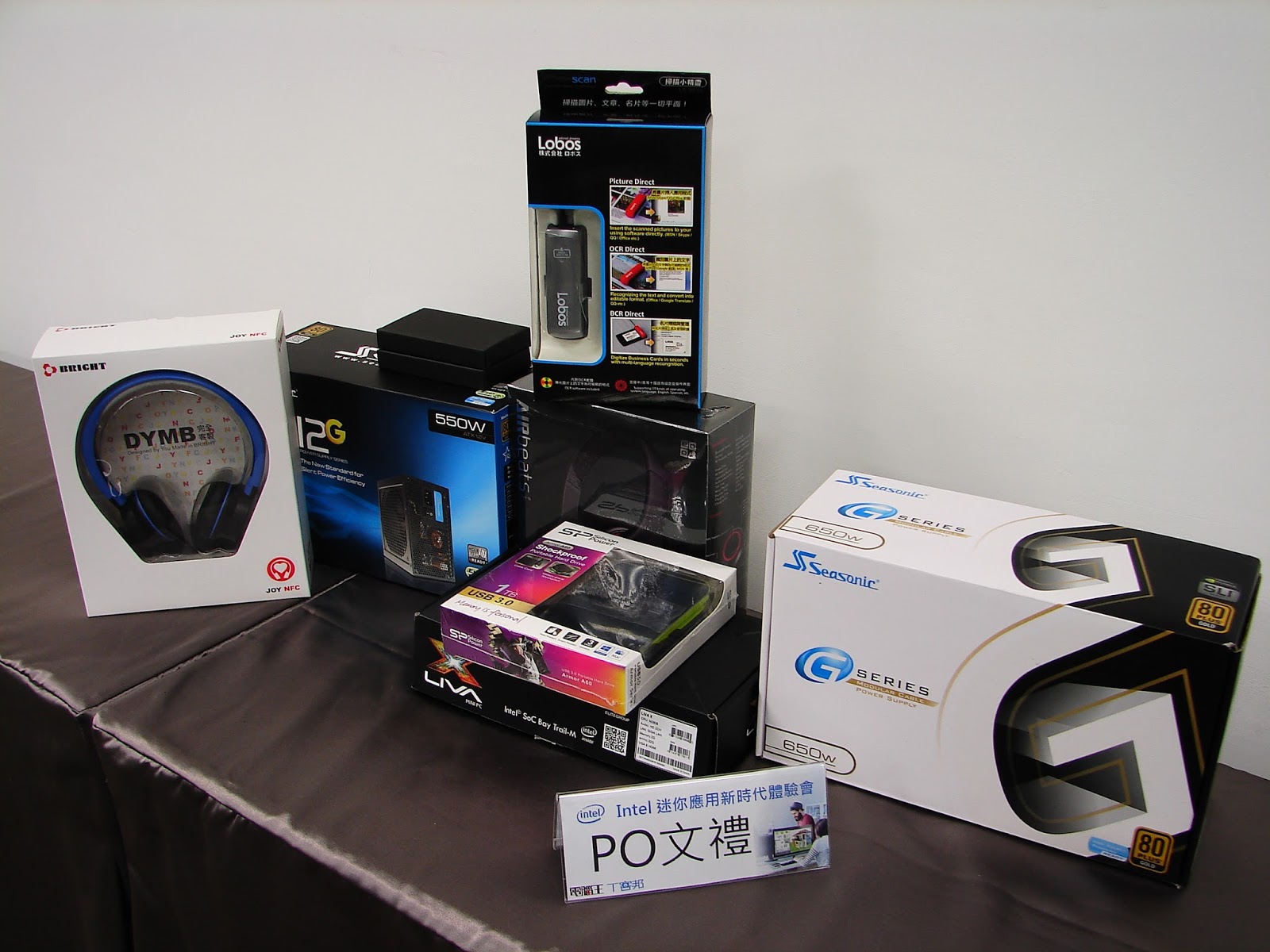 ▲ 最後介紹今天的發文禮,共有最大獎Lemel LIVA 迷你電腦、Seasonic S12G-550W 80 Plus 金牌電源、SP廣穎 Armor A60 500GB軍規抗震硬碟、OEO AIRbeats BTH-01 Relaxo 無線藍牙/藍芽耳機、BRIGHT JOY NFC-H100 藍芽耳機以及PMX-40LB-SC10 Lobos 多功能掃描小精靈 一組、期待獲選的網友的得獎開箱文喔!