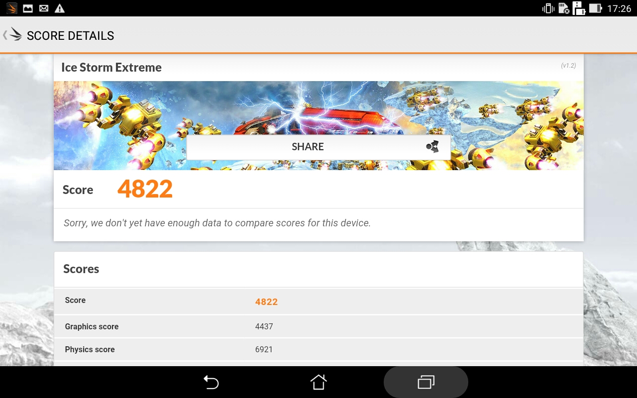 ▲ 3DMark Ice Storm Extreme跑分達4822。