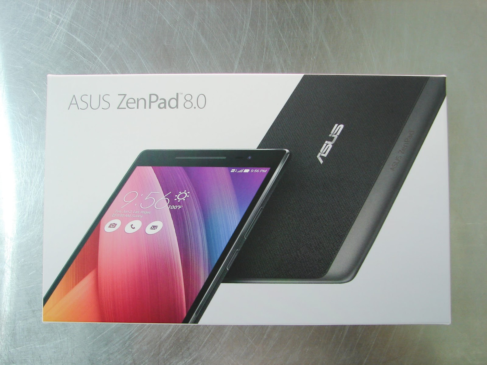 ▲ ASUS ZenPad 8.0 Z380KL盒裝其他角度,勾勾指明機台顏色為黑色,完整型號為Z380KL/4G。(順帶廣告: 本圖使用LolliFlash補光,製造暗角效果。)