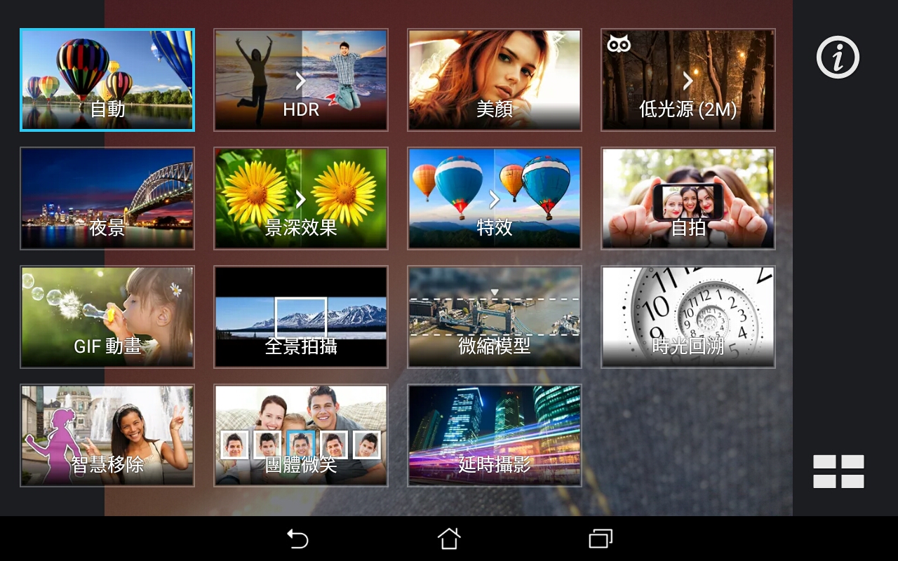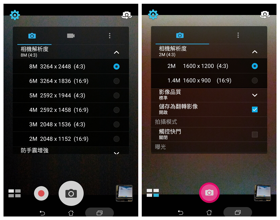 ▲ ASUS ZenPad Z380KL原生相機的豐富功能,亦不惶多讓。