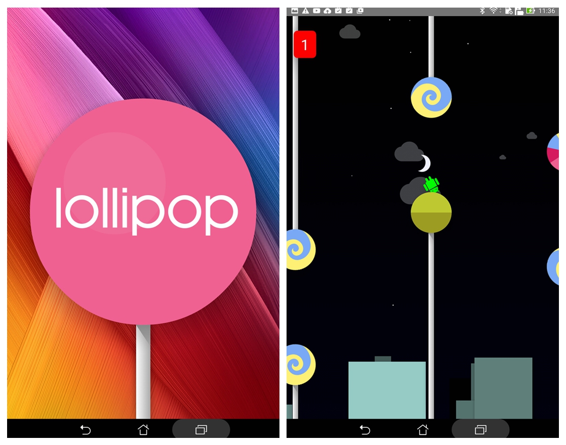 ▲ Lollipop的彩蛋,在棒棒糖的圈圈中連續滑動,則會出現類似FlappyBird的彩蛋小遊戲,不過遊戲十分困難,滑石粉玩了近百次才得到唯一的一分。