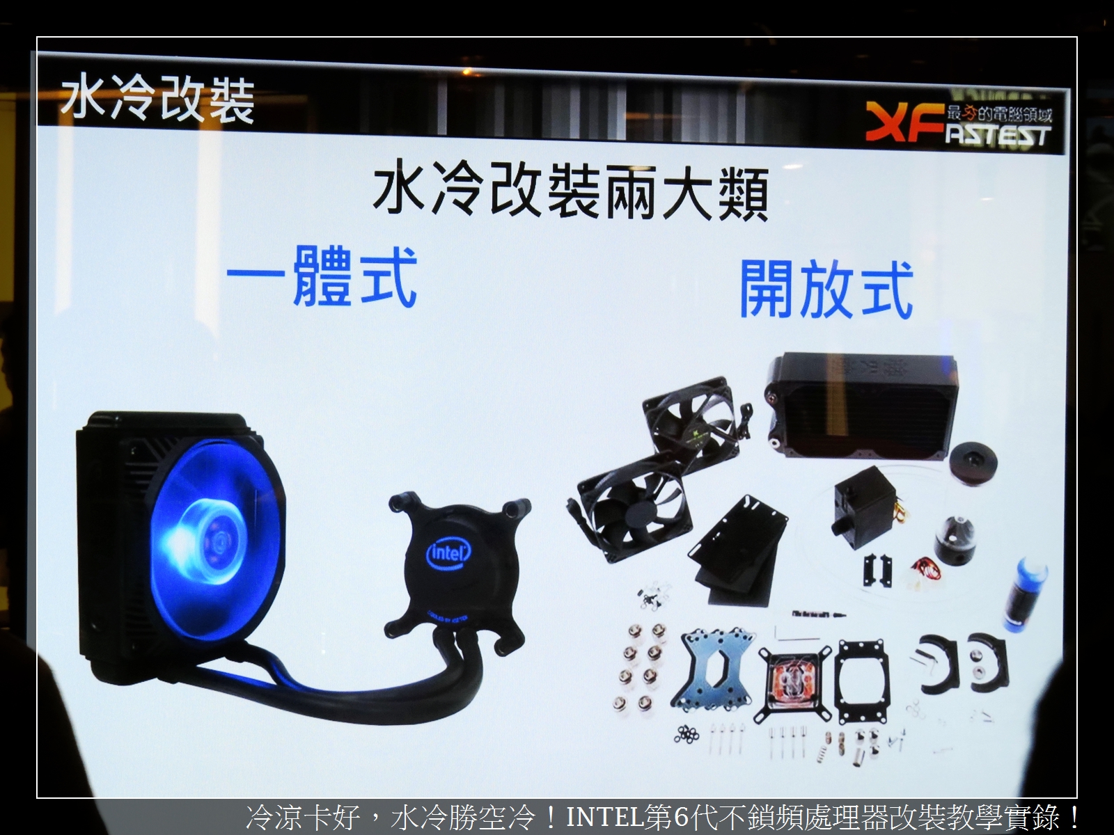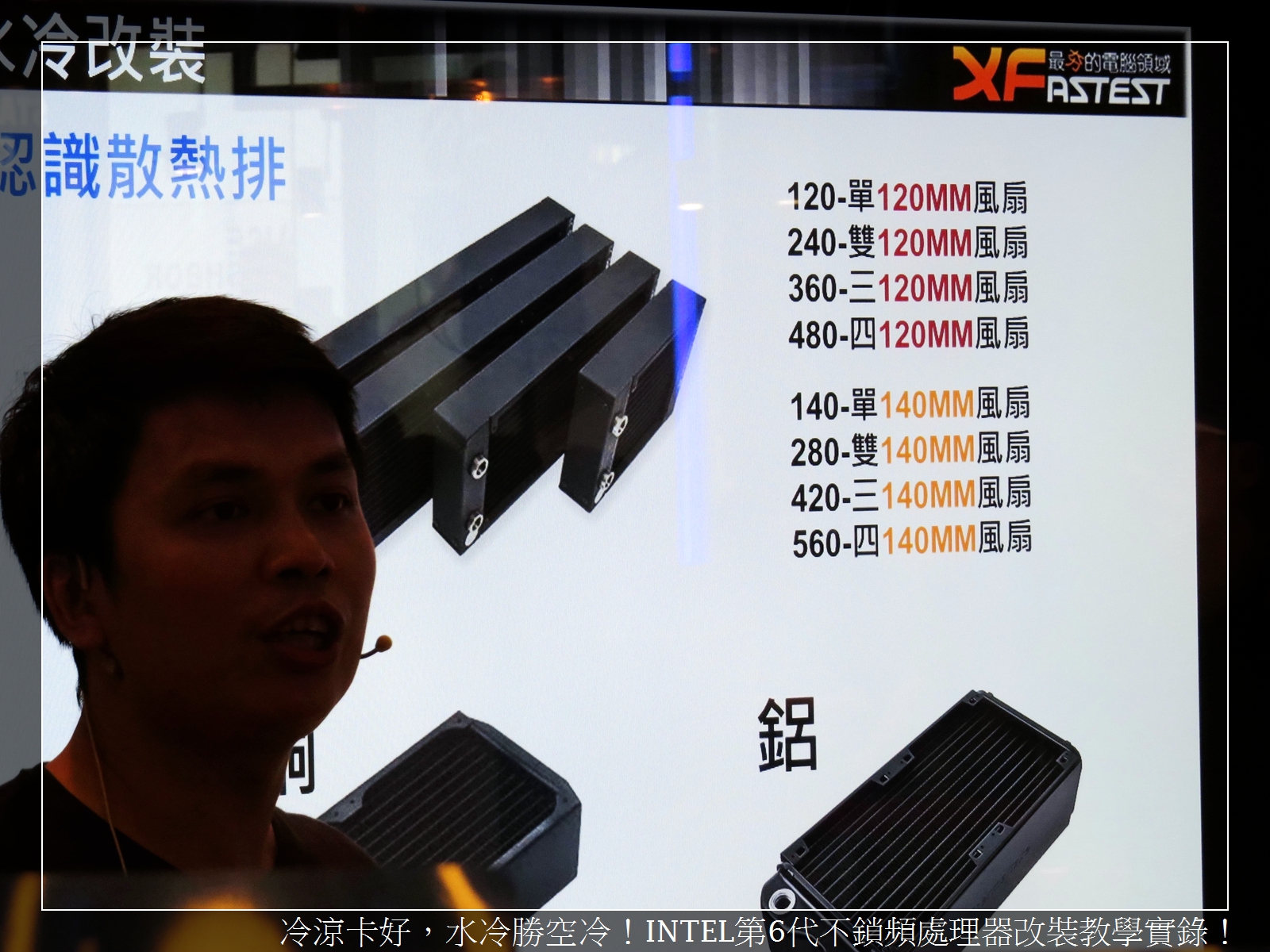 各位大大可能會關心水冷的入門門檻會不會很高,盒裝CPU內都附有一顆原廠認證過的合格散熱風扇了,我們還需要購買水冷套件嗎?關於這個問題,在提問時間時,筆者替各位大大請教了Kevin站長大大,使用一體式約一千出頭,並不會造成很大的負擔。熟悉水冷改裝技術的玩家增加,代表使用不鎖頻處理器的玩家理應也會增加,真的滿佩服Intel這個行銷點子,由提升使用者技能進而增加產品銷量,也難怪這場活動會分成五個梯次,大量收納111為XF上的PC頂尖玩家。