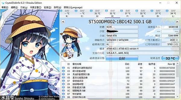 可以看到接下來測試第二顆的產品是Seagate500GB的產品,你可以看到規格一樣是7200轉,也可以看到使用時數已經非常久了。