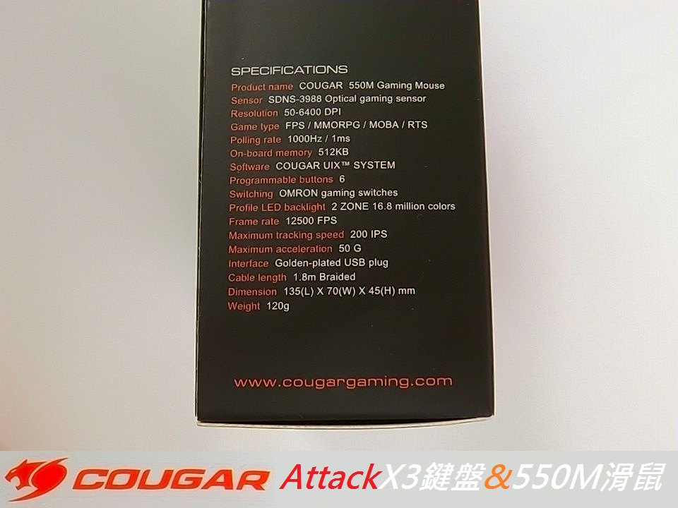 ▲ COUGAR 550M電競滑鼠外盒背面。