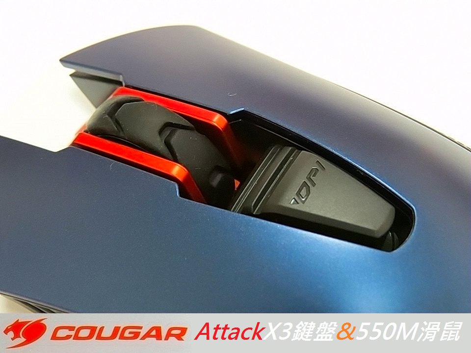▲ COUGAR 550M電競滑鼠當然少不了歐姆龍微動開關,耐用500萬次,滑鼠滾輪下方的DPI選擇鍵,預設作為DPI切換,但可以使用軟體設定特殊功能。