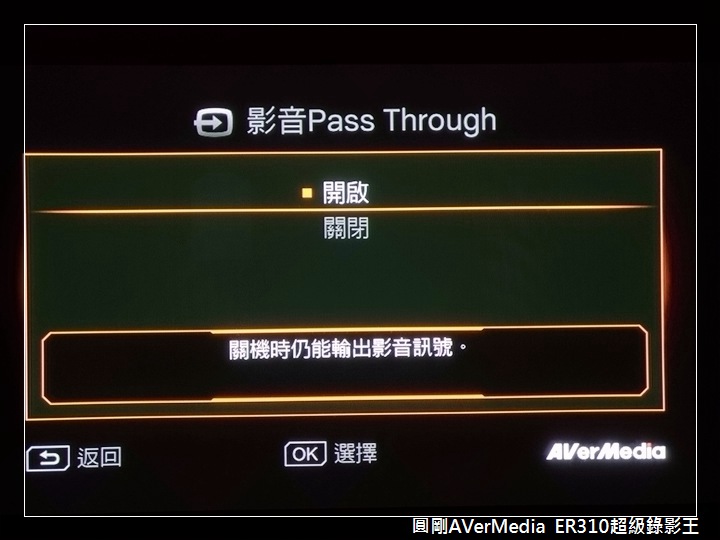 ▲ 設定Pass Through功能,可以在ER310關機時,仍讓HDMI訊號輸出到電視上,等於兩條HDMI線導通一樣,可以適時地將ER310關機以節省電力。
