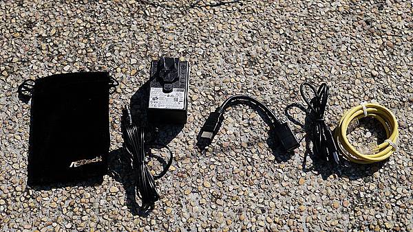 配件包內容物有絨布袋、變壓器、HDMI延長線、micro usb線以及網路線。