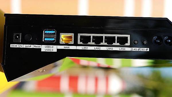 上面端子標示清晰,其中USB3.0端子一個可以插印表機,另一個可以插上外接式硬碟具有基本NAS功能。