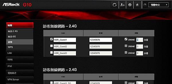 另外最近都很注重安全性,如果家裡有客人來,要使用網路,又不想用原來的固定熱點時,就可以開啟訪客無線網路,專給客人使用,客人走時在關掉即可。