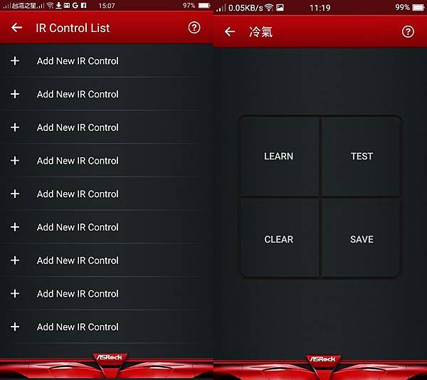 可以進行家電控制,不過比較麻煩的是要一一學習,另外一次只能學習一個按鍵,不能現在手機遙控一樣,可以點選廠商裝置代碼後直接使用。