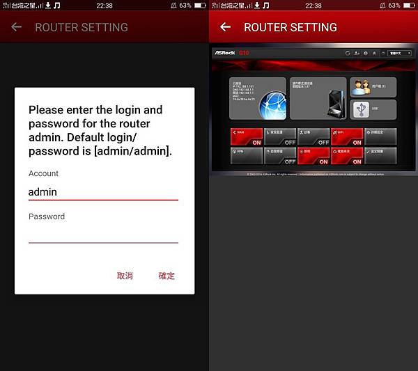 首先開始介紹第一個功能Router SETTING,主要是進入設定頁面,輸入完帳號密碼之後就會出現右圖的畫面。