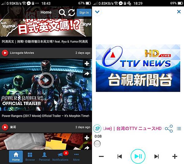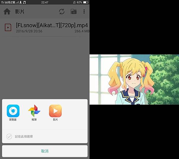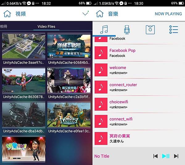 首先是影片的部分,可以讀取裝置的影片檔案,直接在手機撥放。