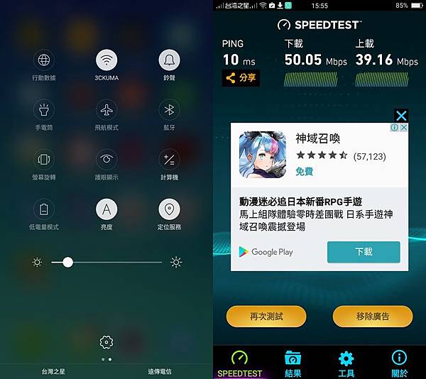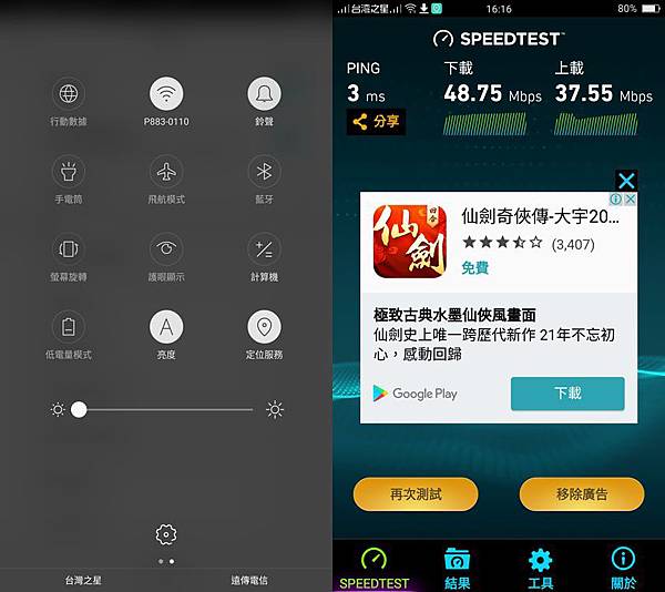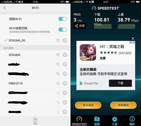 測試設備:OPPO R9s(2.4/5GHz 802.11ac、MU-MIMO)