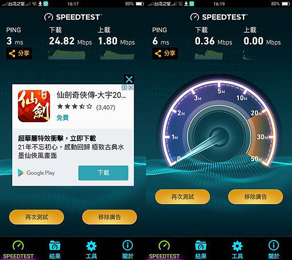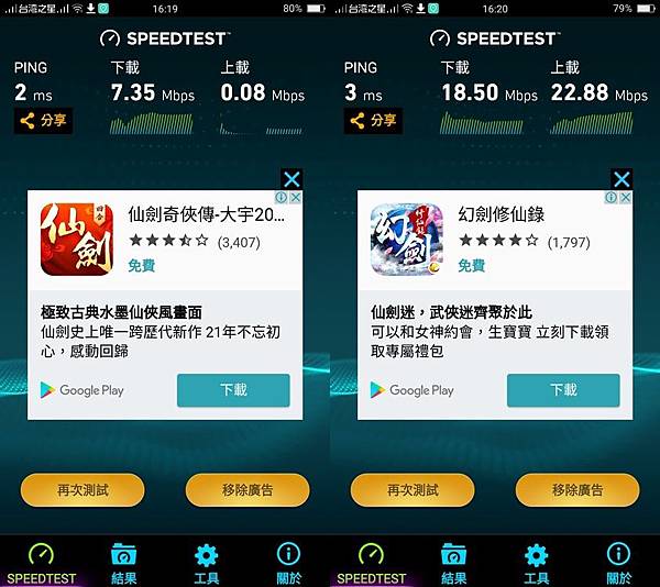 不過可以看到穿了一道牆後明顯速度降下很多,測試地點三更是慘兮兮,幾乎沒辦法順利完成測試。