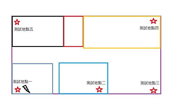 星星表示測試地點位置。閃電符號表示G10無線路由器擺放地點。
