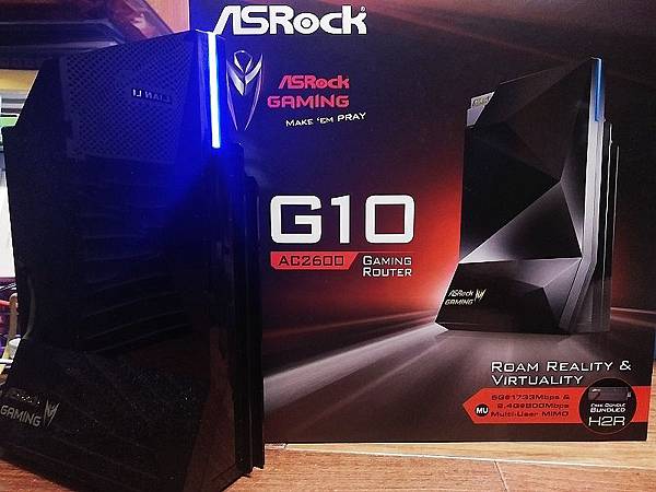 另外ASRock G10 Gaming Router外型設計上非常獨特,並且採用鏡面多邊形設計,擺在客廳非常時尚好看,而且不佔空間。