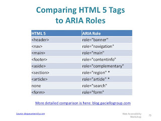 更重要的問題是在 FrontEnd 前端的多樣性越來越高的發展下, 不只是看的問題, 連輸入也是一個大問題, 所以 WAI-ARIA (Accessible Rich Internet Application) 就隨之應遇而生, 其中最重要的是 "Role" 這概念的普遍使用, 這個 Role 是甚麼呢? 下面是基本的解釋: