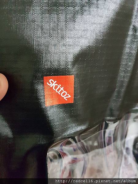 【▼】skitoz鋼鐵極限三棲包有顯眼的skitoz紅色標誌。