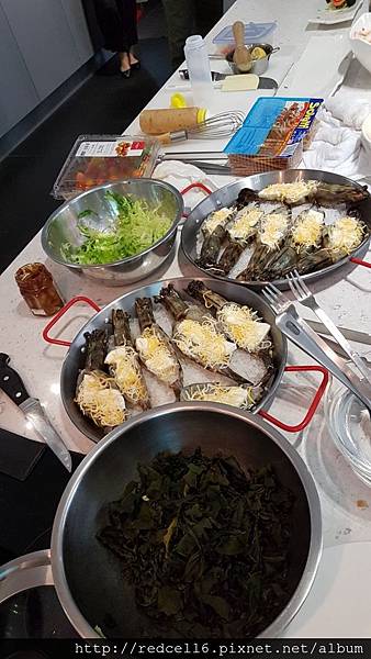 【▼】主廚精心料理的甜柿蘆筍牡丹蝦、明蝦木瓜船、煙燻鮭魚捲、阿根廷紅蝦蘋果盅、香煎干貝、土鷄鳳梨串夏威夷風、塩焗大明蝦、烤鱈場蟹腿沙拉、義大利式烤土鷄輪番上桌讓大家吃的非常開心!