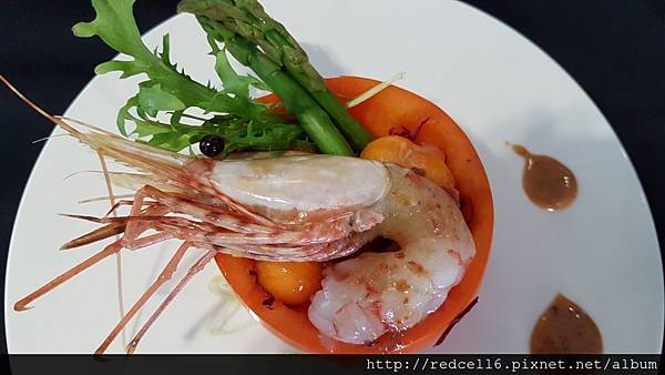 【▼】甜柿蘆筍牡丹蝦:牡丹蝦的鮮甜搭配甜柿及蘆筍顯的更加爽口