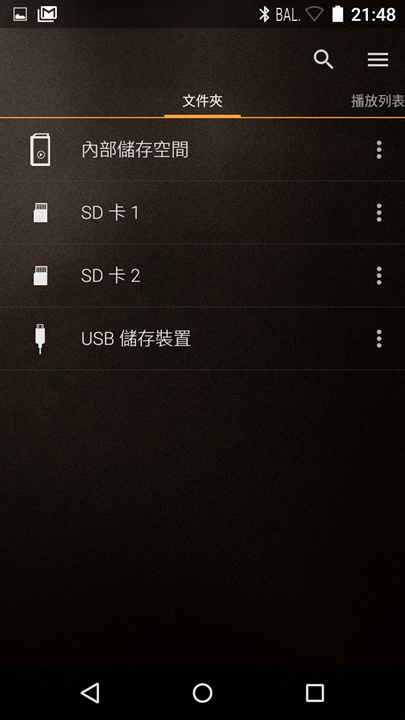 ▲ 音訊檔案的儲存位置可以來自本機內部儲存空間,兩張SD卡其中之一,或使用OTG連接USB大姆碟。