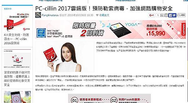 於是他開啟MAC PRO的筆電開始尋找大廠牌、跨平台、可以對抗勒索病毒,又有家長防護網的防毒軟體,突然他在T客邦看到有關PC-cillin 2017雲端版介紹的文章,於是下定決心購買這套PC-cillin 2017雲端版來守護全家。