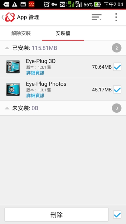 ▲ 搜尋出已安裝過的APK,刪除以爭取更多剩餘儲存空間。