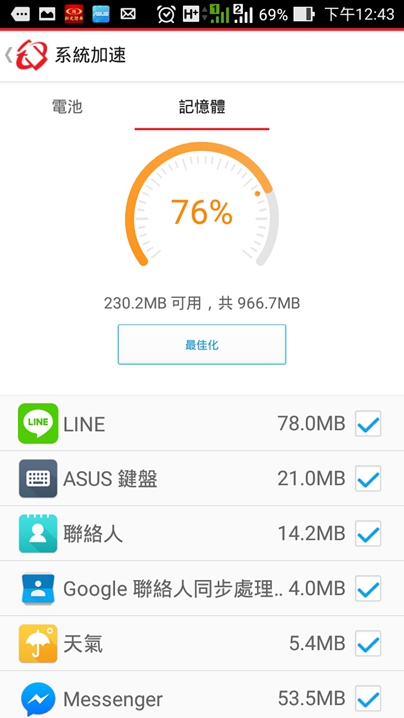 ▲ 支援系統加速,可以協助最佳化記憶體使用,減少程式開啟也能增加手機續航力與反應速度。