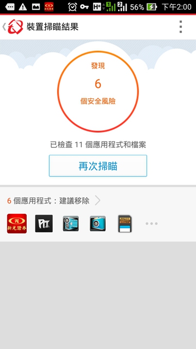 ▲ 經掃描已經安裝的App,發現有8個APP開啟過多權限或有安全風險。