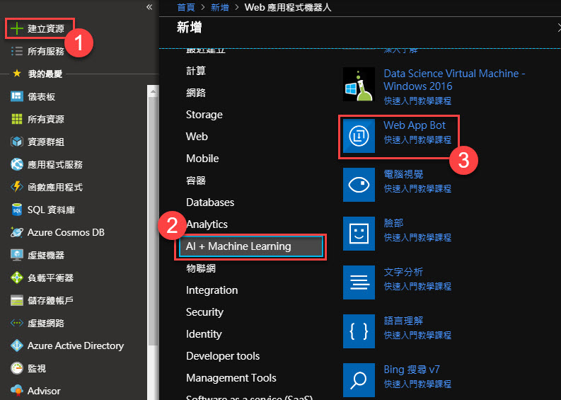 用 Azure 建立一個簡單 Bot Service 。
