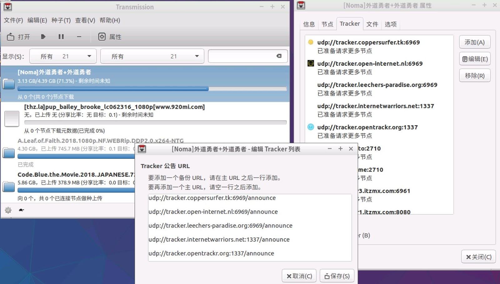 找到合適的tracker,好的我貼在下邊。在你的下載工具中添加以下track,我以Transmission為例: