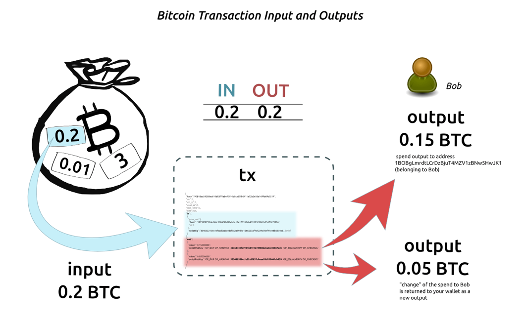 我們可以想像比特幣是一坨一坨的錢堆,我們的地址比較像是能夠操控這些錢堆的鑰匙。可以把錢堆湊在一起做交易;也可以把一坨錢堆拆開來交易。