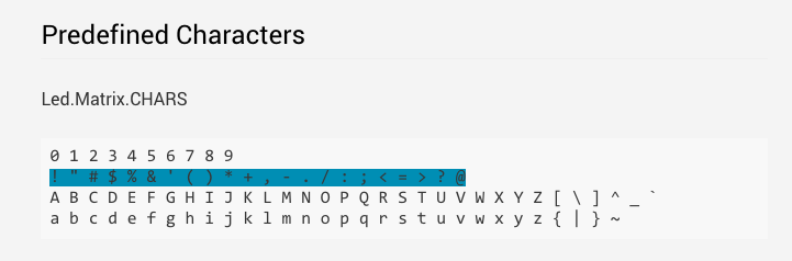 已經預定義的字元表在Johnny-Five裡有寫到,總共有這些字