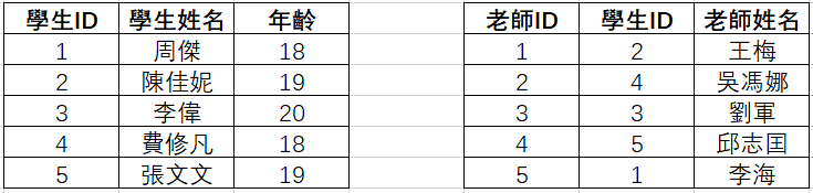 比如上面兩張圖,左圖是學生資訊表,右圖是老師資訊表。左圖的主鍵是學生ID,右圖的主鍵是老師ID。細心的讀者可能發現右圖還有一個學生ID,這裡的學生ID是專門用來聯接用戶表的,它並不是主鍵。只不過兩張表通過學生ID這個唯一資訊來關聯。