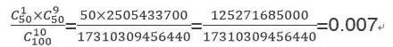 在無效假設成立的前提下,能拿到1個紅豆、9個黑豆的概率為: